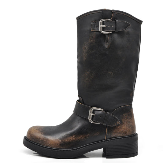Stivali Biker Motociclista da Donna con Fibbia Effetto Vintage MP2743-4 nero marrone