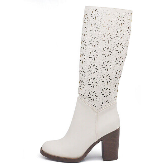 Stivali Camperos Primaverili Estivi Da Donna Tacco Grosso Traforati Alti MP315-2