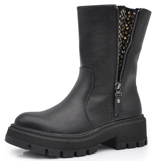 Stivali Stivaletti Biker Anfibi Motociclista Zip Strass Brochie Da Donna YG900