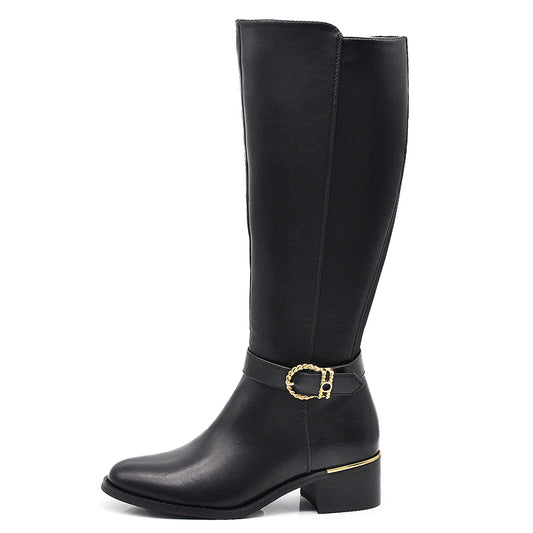 Stivali alti da donna con fibbia dorata eleganti al ginocchio tacco basso gambale elasticizzato 2417-1