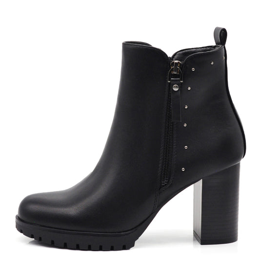 Stivaletti da donna con borchie decorativa tronchetti tacco alto largo platform carrarmato 9115-7 nero
