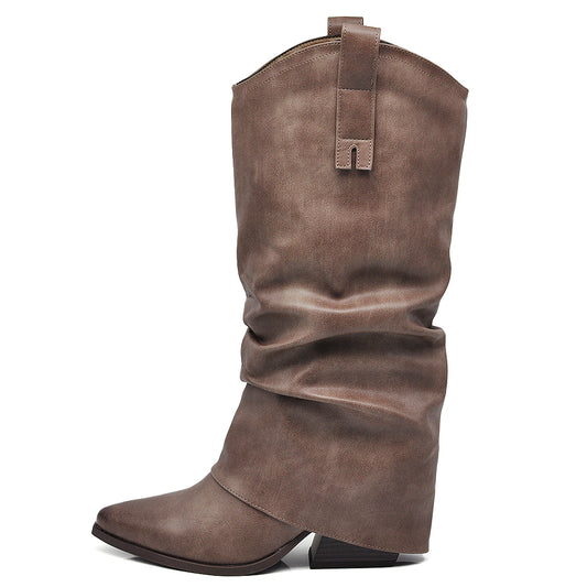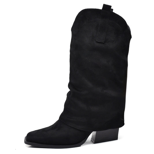 Scarpe da Donna Stivali Texani Western Stivaletti Arricciati Scamosciati Con Ghette Punta Quadrata MP738