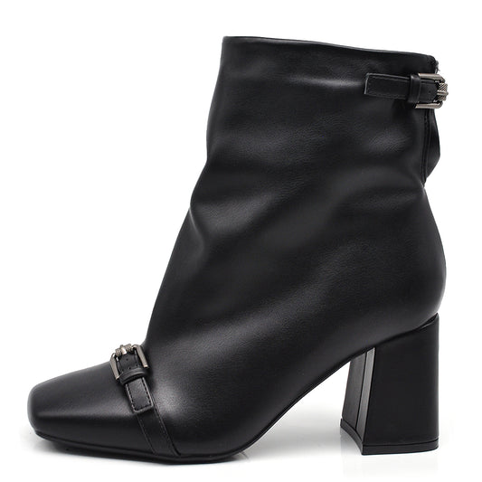 Stivaletti da donna punta squadrata con fibbia decorativa tronchetti eleganti gambale morbido tacco largo MP2735-2 nero