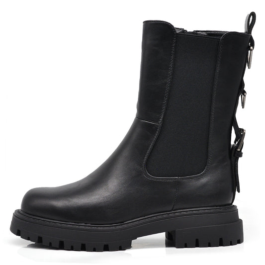 Stivali Biker Ciclista Stivaletti Chelsea Donna con Suola Spessa Chunky 3 Fibbie Posteriori MP2747-3