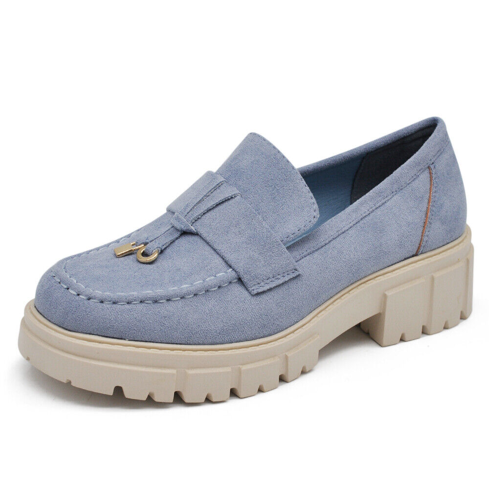 Scarpe Mocassini Loafers Slip On Scamosciati Da Donna Platform D8102 Khaki blu