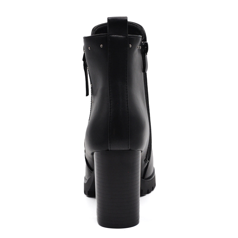 Stivaletti da donna con borchie decorativa tronchetti tacco alto largo platform carrarmato 9115-7 nero
