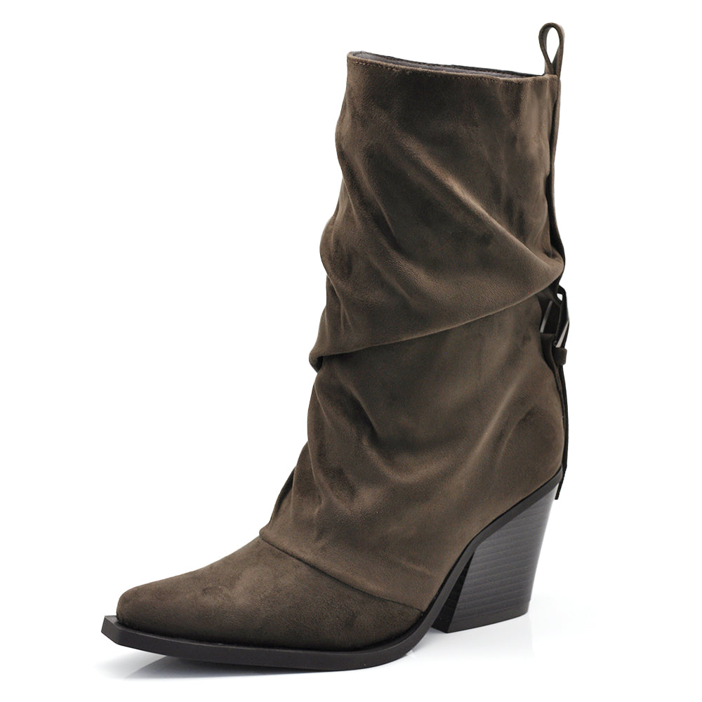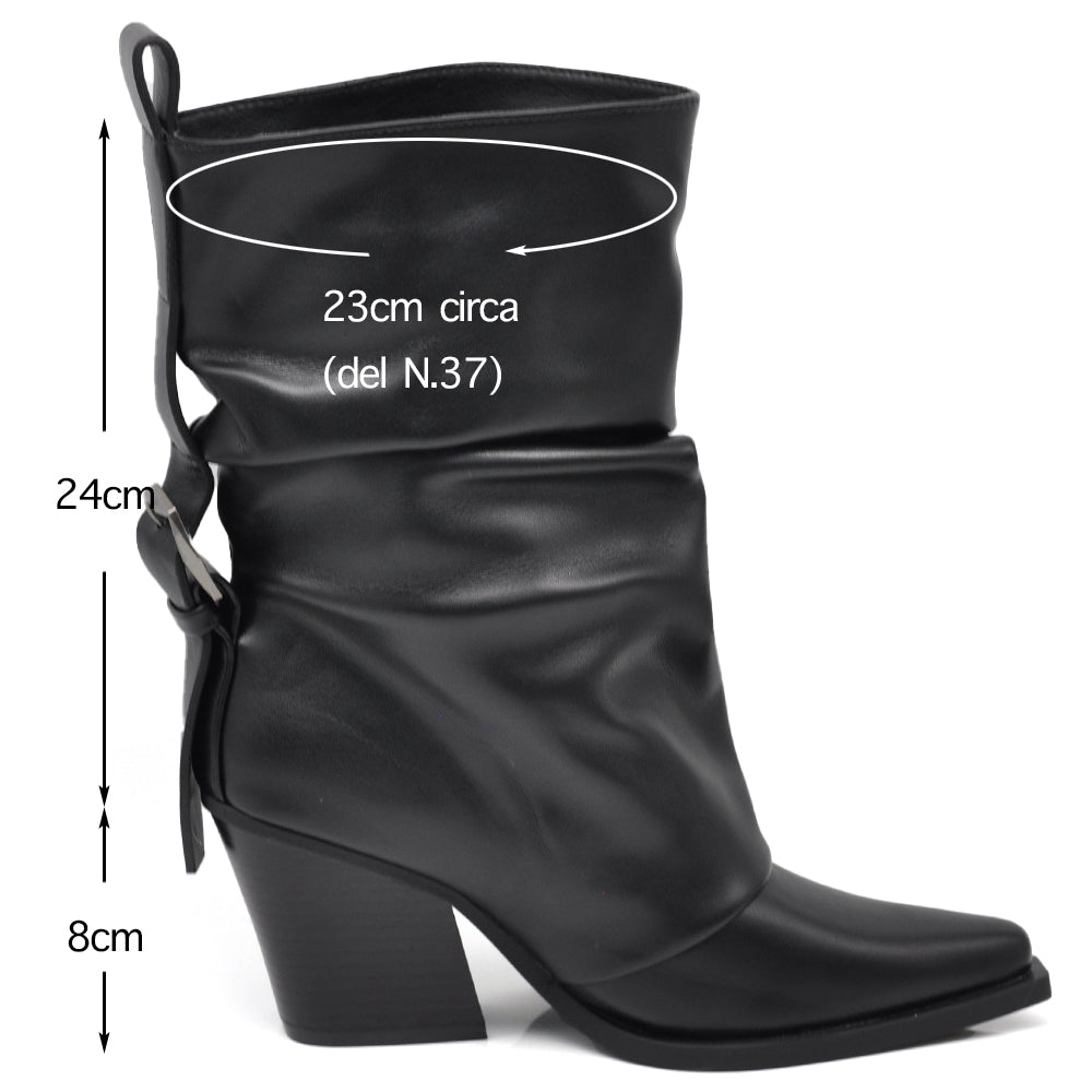 Stivaletti Donna con Tacco e Cinturino Punta Affusolata, Gambale Drappeggiato 2701-5