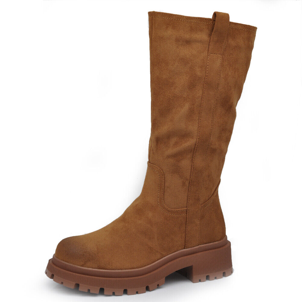 Stivaletti Stivali Biker Al Polpaccio Da Donna Scamosciato Platform GR-6632