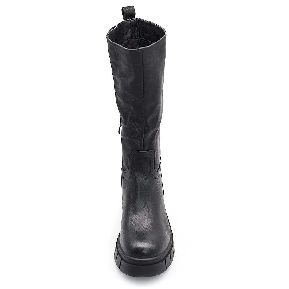 Stivali al Polpaccio Motociclista Biker Da Donna Pelle Vega con Platform GR-6612 nero