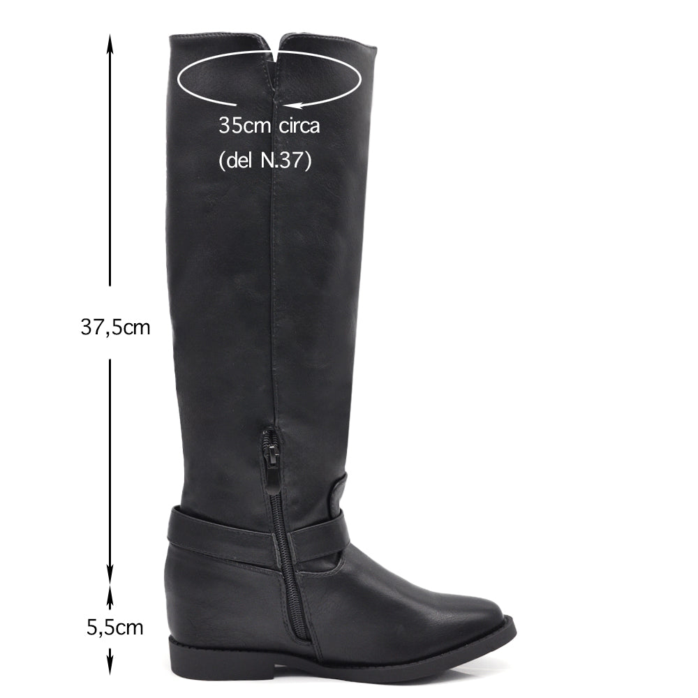 Stivali Alti Da Donna Con Cinture e Fibbie Zeppa Interna Rialzo MP726-2