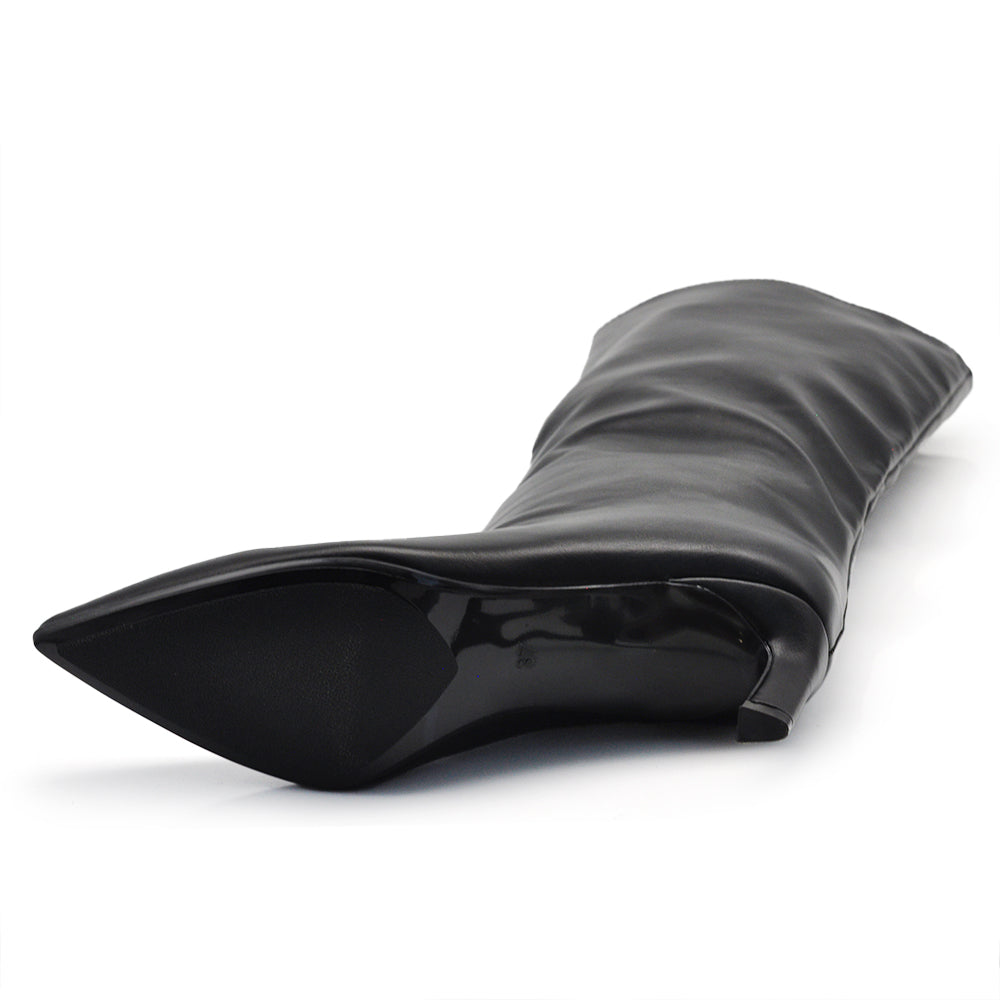 Stivali Alti Polpaccio Da Donna Con Tacco gattina KITTEN HEELS GA047 nero bianco