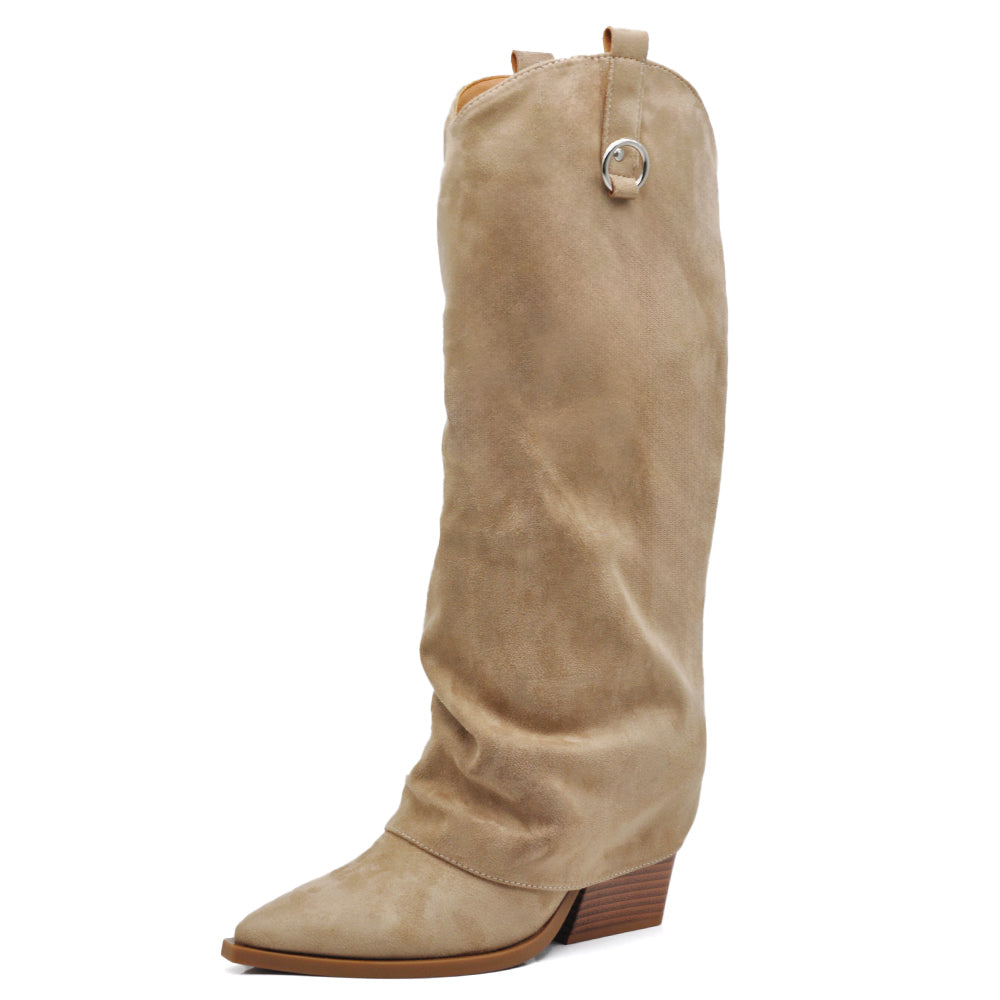 Stivali Texani Arricciati stropicciati Da Donna A Punta Con Tacco E Ghetta Risvolto MP742-2