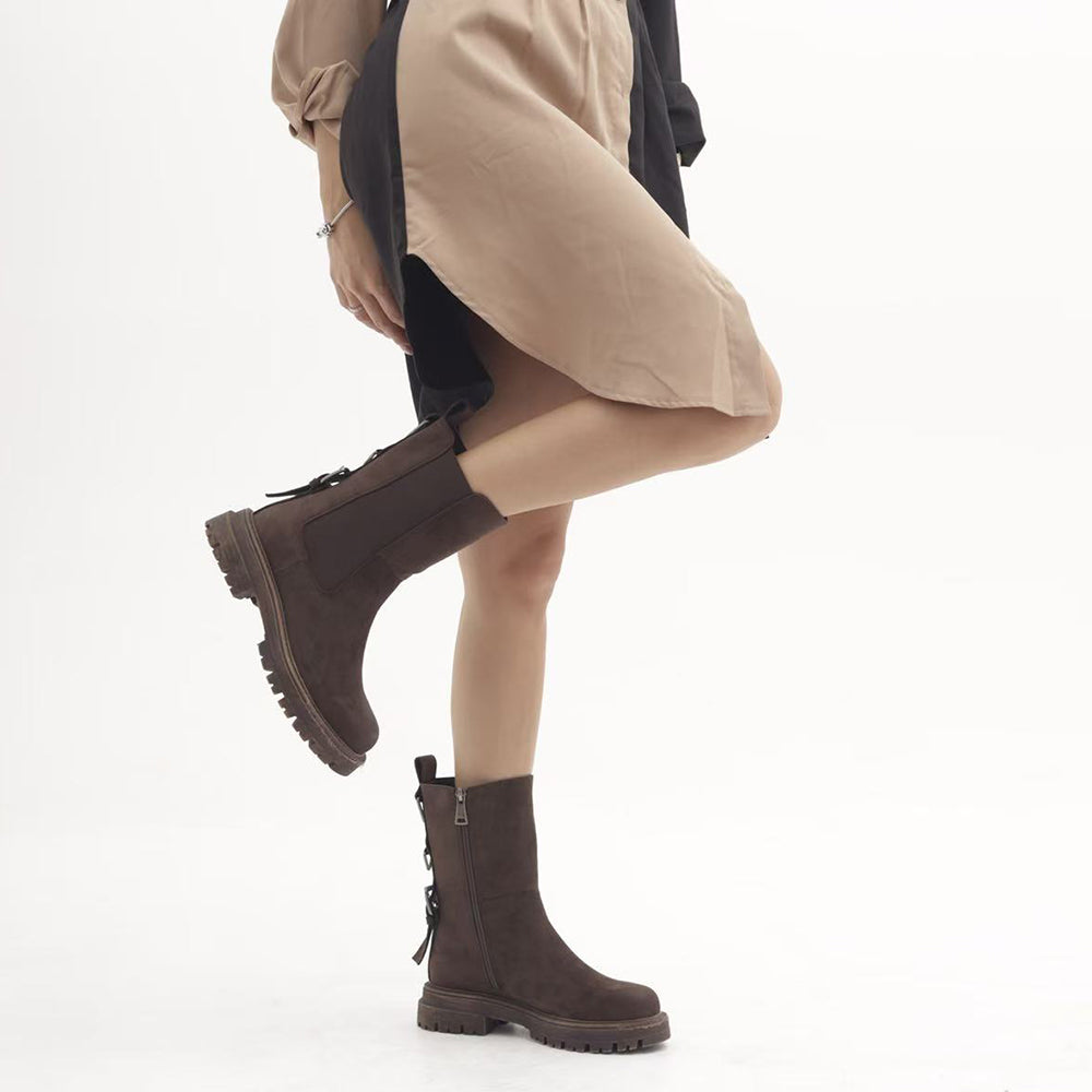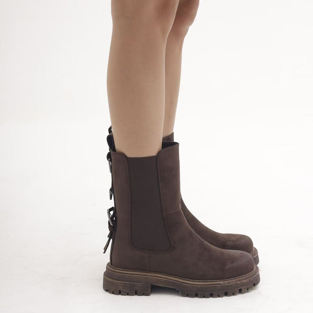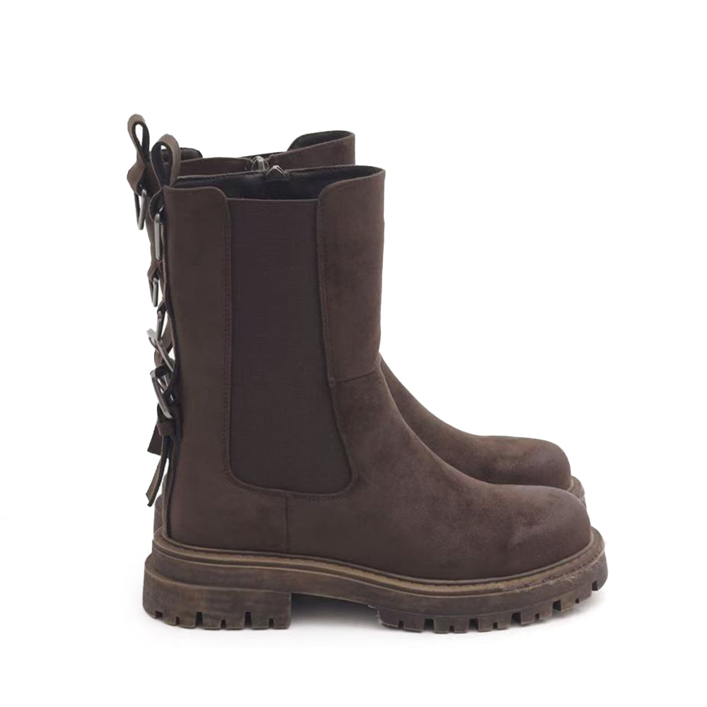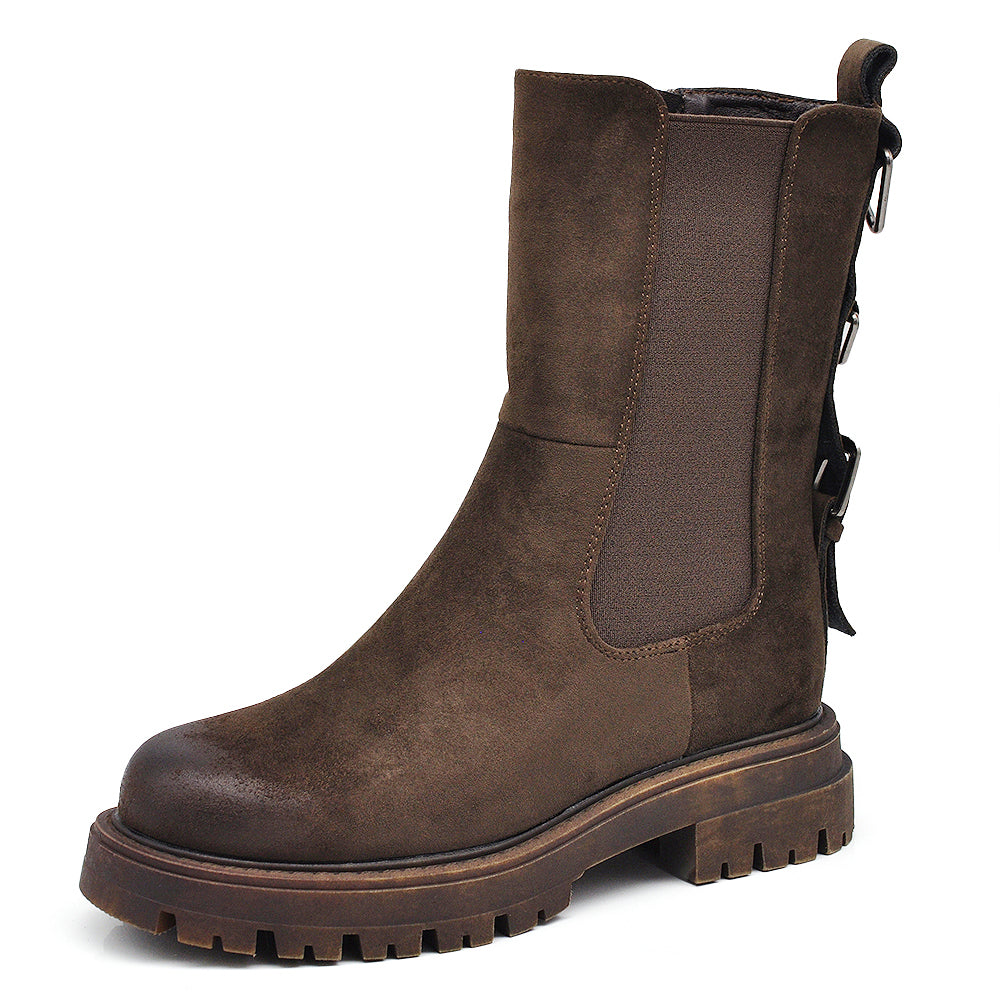 Stivali Biker Ciclista Stivaletti Chelsea Donna con Suola Spessa Chunky 3 Fibbie Posteriori MP2747-3