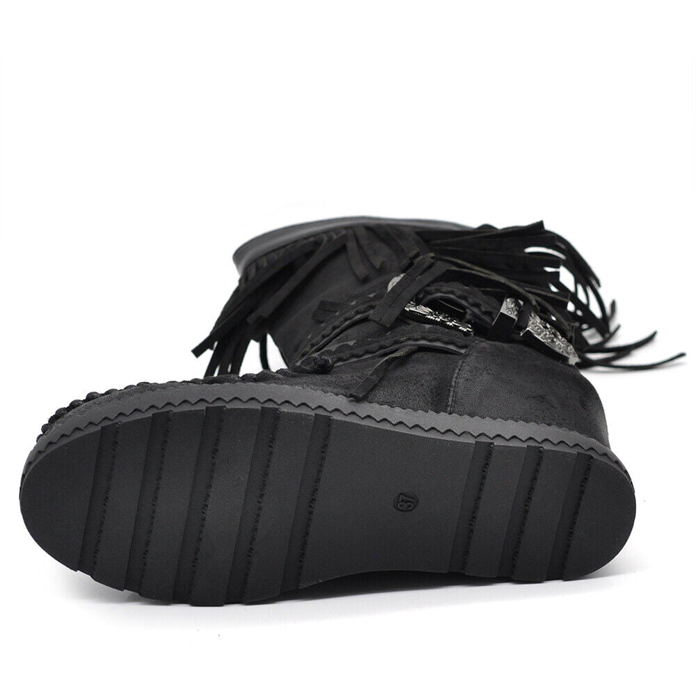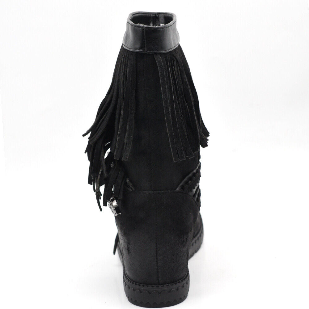Stivali Stivaletti Indianini Da Donna Fibbia Zeppa Scamosciato Frange 9669