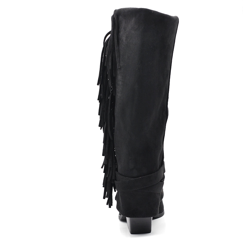 Stivali Texani Cowboy Cowgirl Con Ghetta Frange Camoscio Sintetico Camperos G709 nero marrone khaki